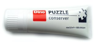 Zákazníci si chvália aj Dino lepidlo, ktoré sa nanáša na puzzle aj hubkou, ktorá predstavuje súčasť tuby. Toto lepidlo má schopnosť vytvoriť na puzzle ochranný film.